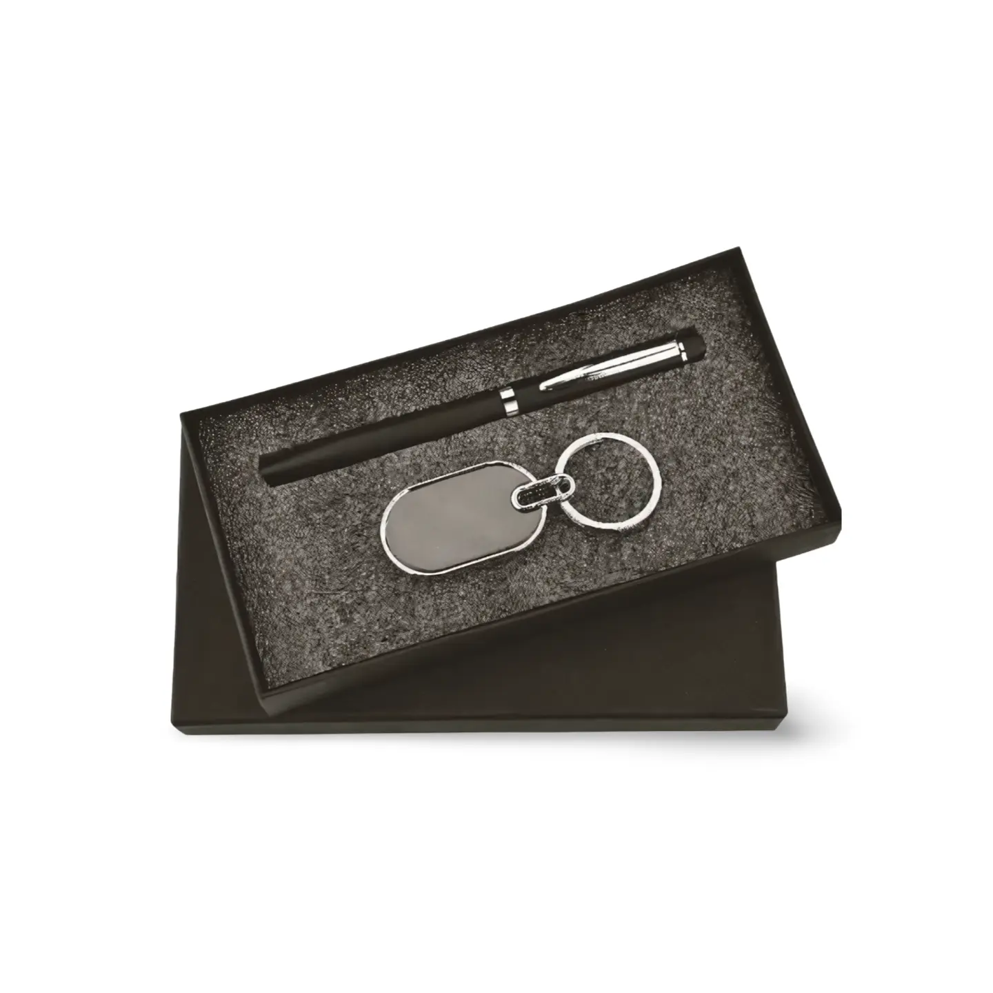 This elegant black leather gift box contains a sophisticated Jode pen and keychain, making it the perfect gift for any occasion. The sleek design and high-quality materials make this set a timeless and practical choice for anyone in need of a stylish writing instrument and a durable keychain. Whether for a professional setting or personal use, this set is sure to impress and be appreciated by the recipient.