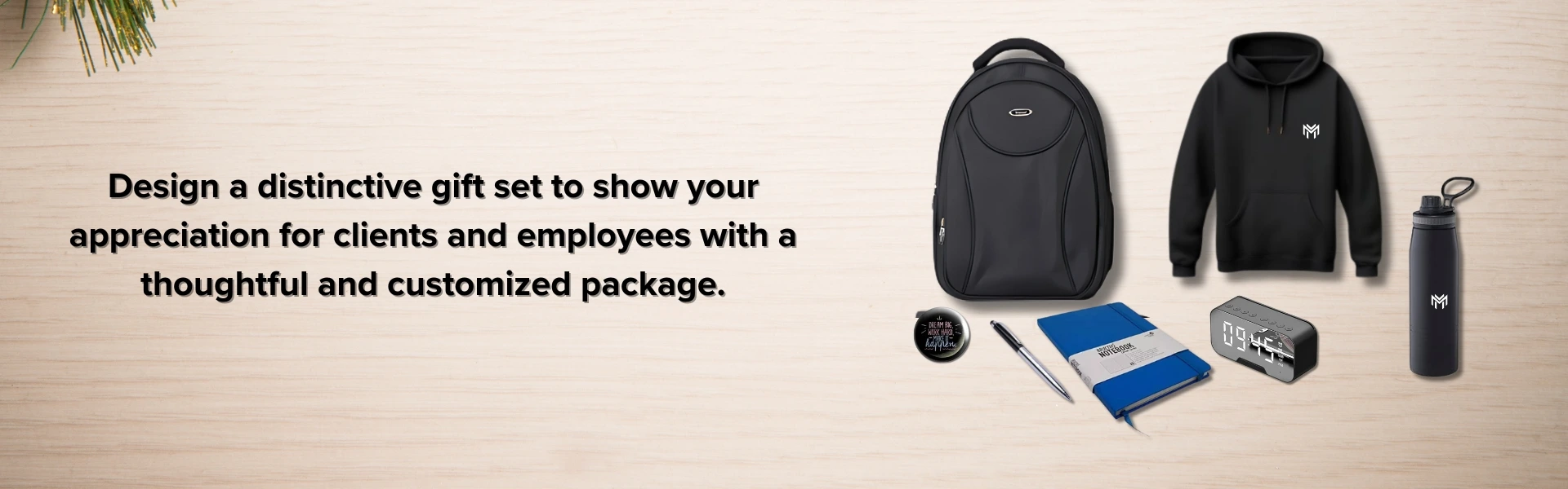 Personalized corporate items such as coffee mugs, planners, and more